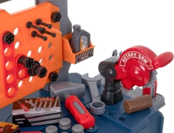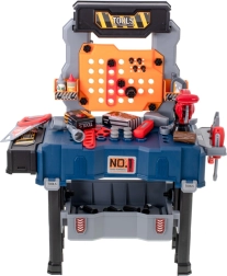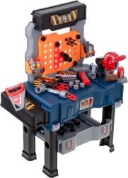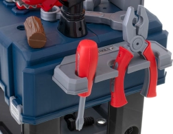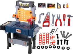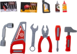 Indeholder skruer, møtrikker, søm, sav, nøgler, skruetrækker, hammer, tang og forbindelsesstykker – alt til realistisk og kreativ leg.
