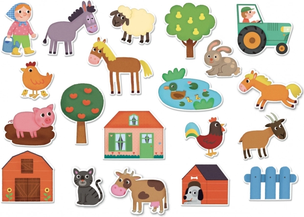 Dette populære sæt giver børn en sjov introduktion til livet på landet. Træmagnetterne er solide, behagelige at holde på og smukt farvede takket være et kvalitetsprint. De egner sig til fri leg, historiefortælling og de første møder med dyrenes verden.