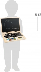 Denne træncomputer tilbyder en interaktiv og lærerig oplevelse for børn. Den er udstyret med bevægelige brikker med bogstaver, tal og symboler, der let kan flyttes på den magnetiske tavle, hvilket gør det muligt at danne forskellige ord eller løse matematiske opgaver. Derudover er der et kridtafdeling, hvor børn kan male og skrive og let kan viske alting ud ved hjælp af en svamp.