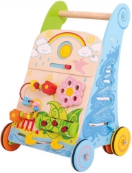 Udforsk verden sammen med et gåstativ, der kombinerer stabil støtte under gang og sjov læring gennem leg. Børn træner øje–hånd-koordination, logik samt genkendelse af farver og former via et rigt udvalg af aktiviteter med dyr, blomster og regnbue.