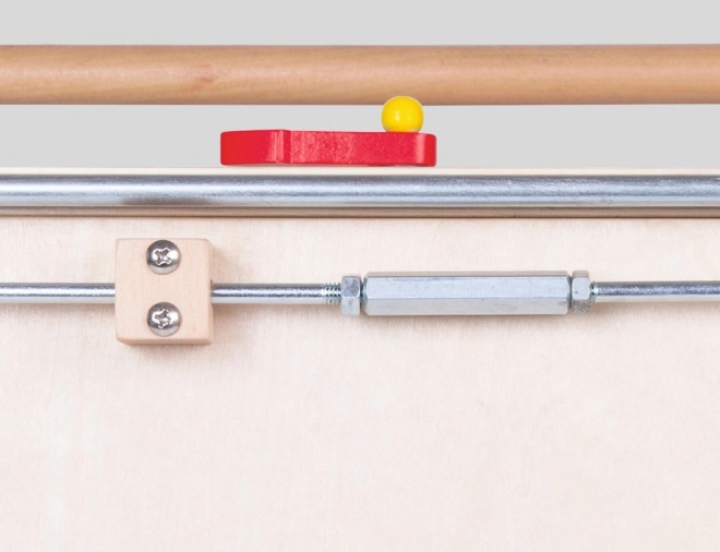 Trækonstruktionen og det multifunktionelle design understøtter kreativitet og motorikudvikling gennem et integreret bremsesystem, en maletavle og indlæringstimer.