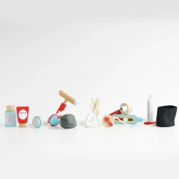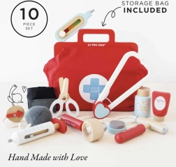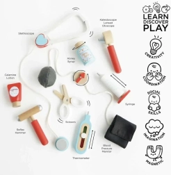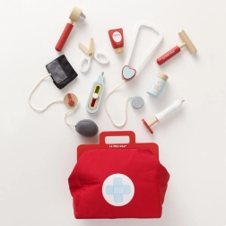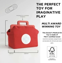 Denne designede doktortaske fra Honeybake-kollektionen af LE TOY VAN er et fantastisk udgangspunkt for rolleleg. Den vintage-inspirerede tekstiltaske med fast bund og træhåndtag gemmer på 10 omhyggeligt udformede tilbehørsdele, der lader børn efterligne ægte lægeundersøgelser. Der medfølger også printbare kort med “lægerecept” for en endnu mere realistisk oplevelse.