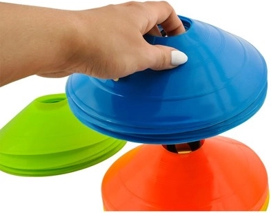 Gul, orange, rød, grøn og blå gør det nemt at opdele øvelser, hold eller zoner. Fremragende synlighed både inde og ude.