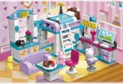Byggesættet QMAN Pigesoveværelse 3-i-1 giver børn uendelige muligheder for byggeri og historier. Af ét sæt kan du lave et komplet værelse med køjeseng, skrivebord og dekorationer eller bygge det om til en hyggelig stue eller spisestue. De livlige farver og de detaljerede accessories inspirerer til lang, kreativ leg.