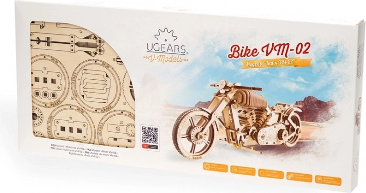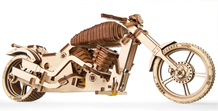 Træ 3D-puslespil motorcykel UGEARS – mekanisk model uden lim