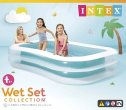 Det oppustelige familiebadebassin INTEX Swim Center er et fremragende valg til have eller terrasse. Takket være to separate luftkamre er det stabilt, behageligt og hurtigt klar til vandleg. Den robuste konstruktion med materialetykkelse på 0,30 mm og det farverige design sikrer lang levetid og et attraktivt udseende.