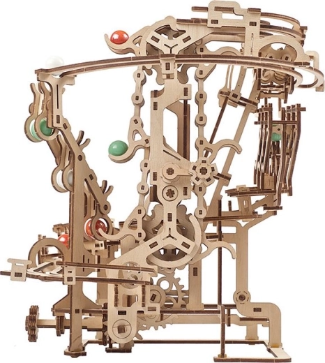 Oplev både sjov og teknisk elegance med UGEARS – en træbaseret mekanisk kuglebane med kædetræk. Den manuelle mekanisme sætter farvede kugler i bevægelse gennem tre unikke sektioner med forhindringer, mens den åbne konstruktion lader dig beundre gear og tandhjul i aktion. Modellen kan forbindes med andre sæt for en endnu mere imponerende bane. Et perfekt valg for kreative entusiaster, der elsker udfordringer og præcise træmodeller.