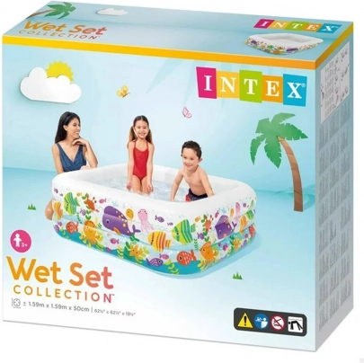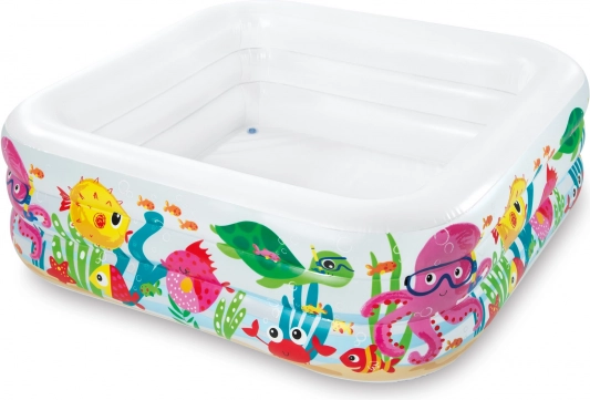 Velkommen til sommerens sjov med vores stilfulde oppustelige pool! Med havtema og tre-kammer konstruktion giver den dine børn masser af underholdning i haven eller ved sommerhuset.