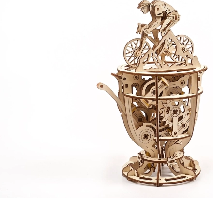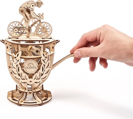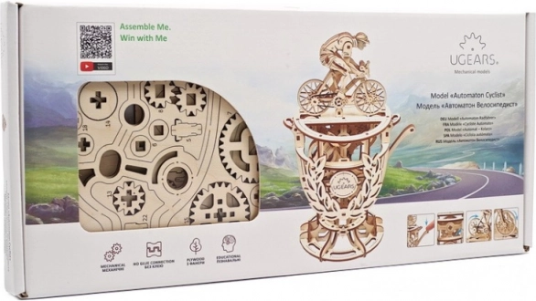 Den mekaniske model UGEARS Cyklist kombinerer traditionelt træ og smart mekanik. Byggesættet i form af et trofæ med en cyklist byder på en glat geargang, håndbetjent løftestang og mulighed for finjustering af svinghjul ved hjælp af mønter eller jetoner. Det er et fremragende valg for alle, der elsker konstruktionsudfordringer, design og teknik.