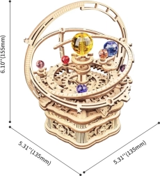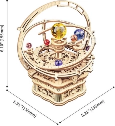 Denne mekaniske 3D-model er ideel til nysgerrige skabere, astronomi-entusiaster og designelskere. Under samlingen udvikler du fantasi, sans for detaljer og logisk tænkning. Takket være den stemningsfulde melodi og det dekorative udseende bliver modellen et iøjnefaldende element i ethvert interiør.
