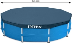 Det praktiske INTEX-overtræk til rammebassiner med en diameter på 305 cm beskytter vandet pålideligt mod snavs og hjælper med at holde på varmen. Det er lavet af holdbar vinyl (110 g/m²), tilbyder præcis pasform, nem montering med snøre og ligger sikkert takket være 25 cm overlap.
