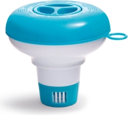 Flydende klor dispenser Intex er et praktisk og bekvemt produkt, der hjælper med at holde pool eller jacuzzi ren. Denne lille enhed er fyldt med kemiske tabletter og flyder på vandets overflade, mens den gradvist frigiver rengøringsmidler. Ved at bruge dispenseren inden svømning kan du nyde svømning i rent vand. Udstyret med et dobbeltfaset låg, der beskytter indholdet mod børn, giver det ro og sikkerhed.