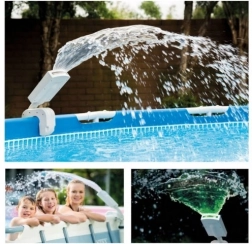 Monteringen klarer du på et minut: fastgør fontænen til poolvæggen uden boring og uden værktøj. Universel montering og den medfølgende adapter gør det nemt at tilslutte til almindelige slanger på 32/38 mm og til filtre med en gennemstrømning på 3.785–12.112 l/t. Produktet opfylder europæiske standarder for sikkerhed.