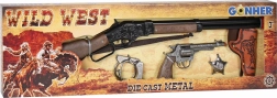 Forvandl børnenes leg i det vilde vesten til et realistisk eventyr. Dette store cowboysæt kombinerer klassisk udseende, sikker legetøjsudførelse og kvalitetsmaterialer. Metalriffel og -revolver til knaldhætter (8-skuds bånd) giver lydeffekter, som børn elsker, mens håndjern og sherifstjerne fuldender outfittet.