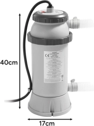 Praktisk elektrisk vandvarmer fra INTEX med en effekt på 3 kW til fritstående pools med en diameter på 244–457 cm, som sikrer hurtig og bekvem temperaturforøgelse af vandet. Den er kompatibel med pumper på 2006–3785 l/h, tilbyder nem installation uden værktøj og sikkerhedsbeskyttelse takket være RCD-afbryder. Drift ved 230 V, nem betjening med én knap og pålidelig temperaturvedligeholdelse på 17–34 °C gør denne varmer til et ideelt valg til familiepools.