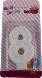 Det elegante fødselsdagslys formet som tallet 9 med diskret glimmer er det perfekte valg til det særlige øjeblik, hvor ønsket pustes ud. Takket være det rene hvide udtryk og glimmeret passer det til mange kagestile og dekorationer.