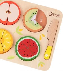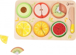 Sæt af træfrugt til skæring er ideelt for små børn, der elsker at lege kok. Dette pædagogiske sæt indeholder 23 forskellige elementer inklusive et bræt, kniv og deles frugt, hvilket giver uendelige muligheder for kreativ leg og imaginære scenarier.