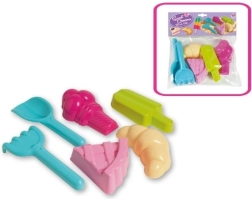 Sjovt sandlegesæt til små konditorer. Med disse forme kan børn lave kager, ispinde, kugleis og andre lækkerier. Sættet indeholder også en skovl og en rive for nem formning. Let plast, nem håndtering og farvemix sikrer timevis af kreativ leg på legepladsen og stranden.