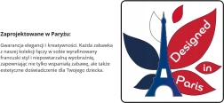 Legetøjet er lavet af kvalitetsnaturtræ med glatte kanter og vandbaserede farver. De pastelagtige elementer er indbydende for børn og samtidig tidløse.