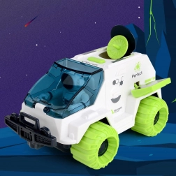 Tag på et spændende eventyr i rummet med et realistisk sæt, der på en sjov måde styrker børns forestillingsevne. Rum-bilen kører med friktionstræk, så det er nok at give den et skub, og den er klar til mission. Når du trykker på knappen, åbner satellitten og solpanelerne, så besætningen kan “kommunikere med basen” og indsamle information fra ukendte verdener.
