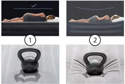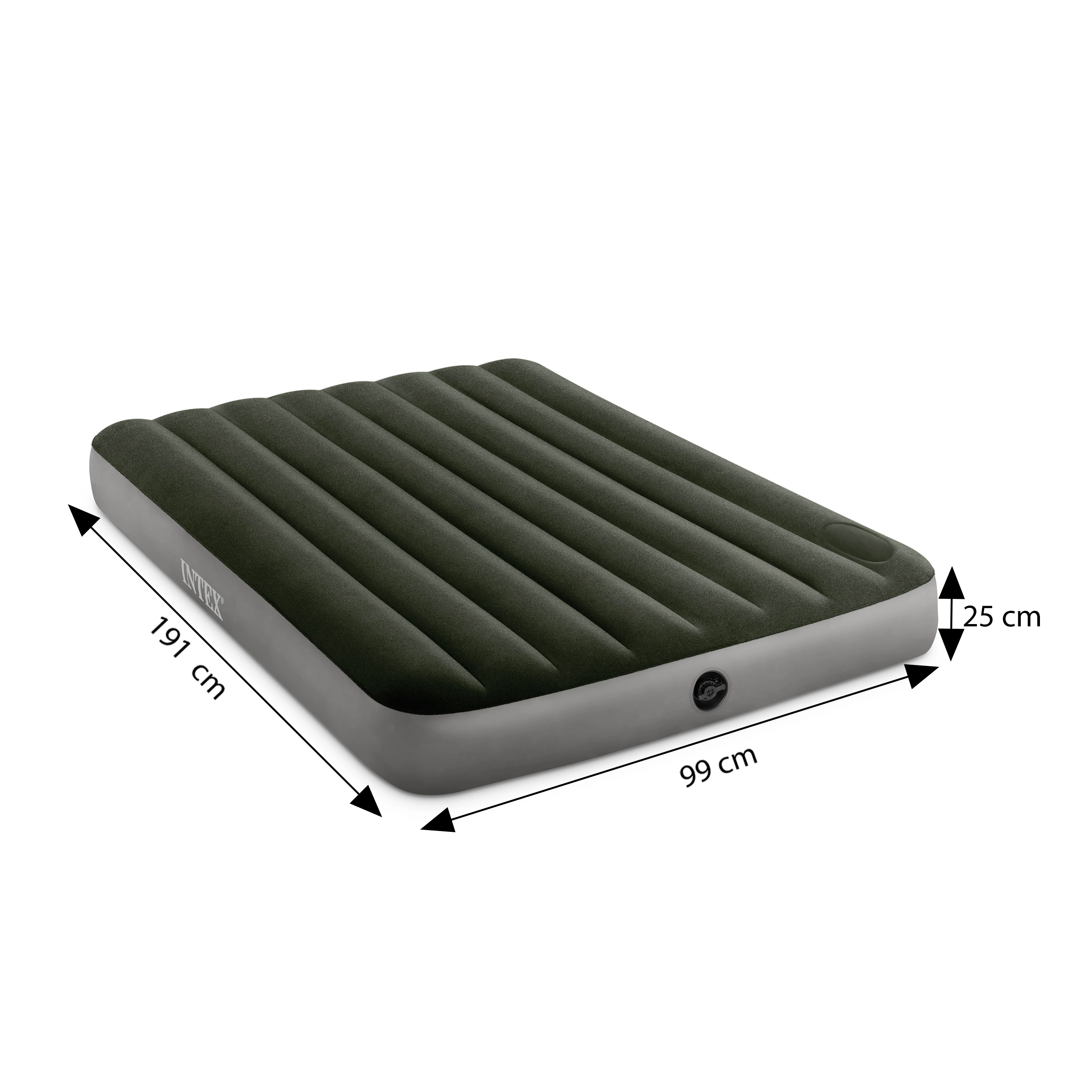 INTEX’ oppustelige madras kombinerer komfort, holdbarhed og mobilitet. Den fløjlsbløde, flockede overflade er behagelig at røre ved og skrider ikke, mens den indvendige konstruktion med Dura-Beam Fiber fordeler kropsvægten jævnt for en rolig søvn. Den integrerede fodpumpe muliggør hurtig oppustning uden elektricitet – ideel til camping, gæster eller som en ekstra seng.
