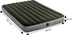 Målene 191 × 99 × 25 cm giver god plads til én voksen. Det kvalitetsrige PVC er let at vedligeholde, og den vandafvisende flock øger både komfort og levetid. En reparationslap til hurtige reparationer medfølger.