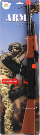 Et realistisk udseende ARMY-legetøjsmaskingevær vil glæde små fans af actionleg. Fungerer uden batterier – det er nok at trække svinghjulet op, og så kan skydningen begynde. Med en længde på 52 cm ligger det godt i hånden og er velegnet til børn fra 3 år.