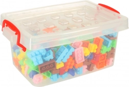 Den gennemsigtige kasse med solidt låg og låse holder alle klodser samlet og altid lige ved hånden – hjemme og på farten.