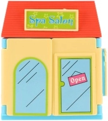 Lille beauty-salon med åbningsbare døre og tilbehør inspirerer til rollelege og udvikler fantasi samt kommunikationsevner.