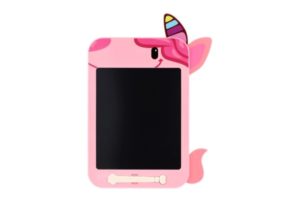 Denne lette og holdbare LCD-tavle på 19,5 × 29 cm giver behagelig tegning og skrivning uden papir. Med den medfølgende stylus kan du nemt lave noter, billeder og hurtige skitser og slette alt indhold med én knap. Det søde rosa design med enhjørning vil børnene straks elske.