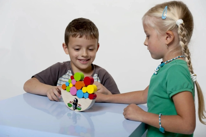 Nyd timer af sjov med træbalancespillet Detoa Krtku, spild ikke! . Lavet af kvalitets træ, styrker dette legetøj ikke kun børns motoriske færdigheder, men tilbyder også berigende spilleoplevelser. Terningen bestemmer farven på klodsen, som spilleren skal placere på brættet uden at få det til at falde.
