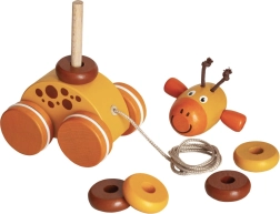 Denne glade træ-trækgiraf motiverer børn til bevægelse og til at udforske verden. Takket være de kompakte mål er den let at styre, og snoren indbyder til at trække den rundt i hjemmet og på tæpper. Den høje kvalitet fra Detoa sikrer lang holdbarhed og sikker leg.