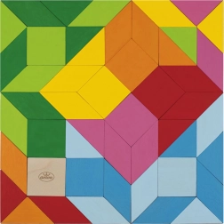 De farverige træbrikker indbyder til at lægge mønstre og eksperimentere. Når børn griber brikkerne, træner de finmotorikken i fingrene, koordination og kreativ tænkning. Legen stimulerer selvstændighed og glæden ved at opdage.