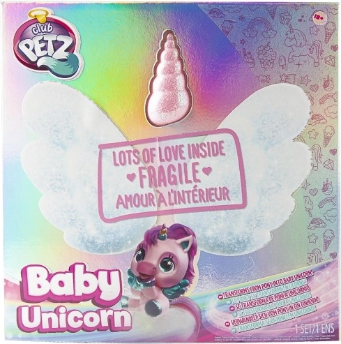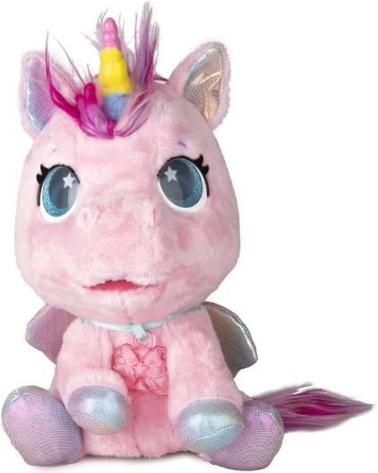 Oplev magien med en plyset ven, der med din omsorg forvandles til en enhjørning! Dette søde kæledyr byder på mere end 30 lyde og interaktioner, magisk vækst af et farverigt horn i 3 faser og kommer med 9 tilbehørsdele til kreativ leg. Kæl, børst, fodr og fuldend forvandlingen ved at sætte de regnbuefarvede vinger og vedhænget på.