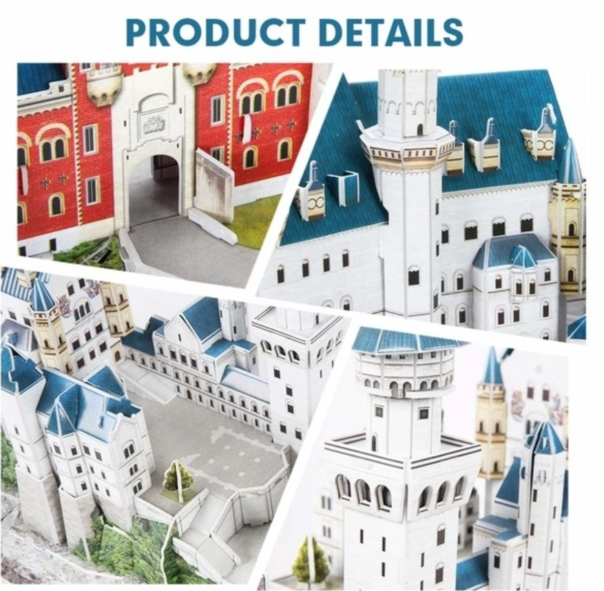 Byg den ikoniske borg NEUSCHWANSTEIN, et af Tysklands mest kendte symboler, opført på initiativ af Ludwig II af Bayern. CUBICFUN 3D-puslespil fra NATIONAL GEOGRAPHIC-serien udmærker sig ved præcis udførelse og materialekvalitet – brikker i ca. 3 mm skum beklædt med lamineret, trykt papir sikrer stabilitet og et detaljeret udseende.