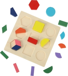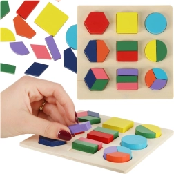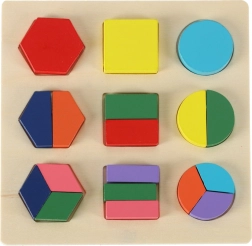 Dette fantastiske træpuslespil gør det muligt for børn at øve logisk tænkning og genkendelse af former. Spillet er baseret på et enkelt princip, hvor former tilpasses de tilsvarende huller, hvilket bidrager til udviklingen af barnets kognitive evner. Velegnet til at lære navnene på farver og grundlæggende matematik, da puslespillet omfatter forskellige former og farver for visuel stimulering.