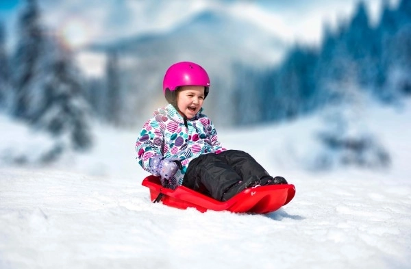 Let og holdbar børnekælk til rekreativ kørsel på sne med sidehåndtag for sikker styring. Det integrerede sæde isolerer barnet fra den kolde sne, og der medfølger et trækreb. Maks. belastning 50 kg, til ét barn.