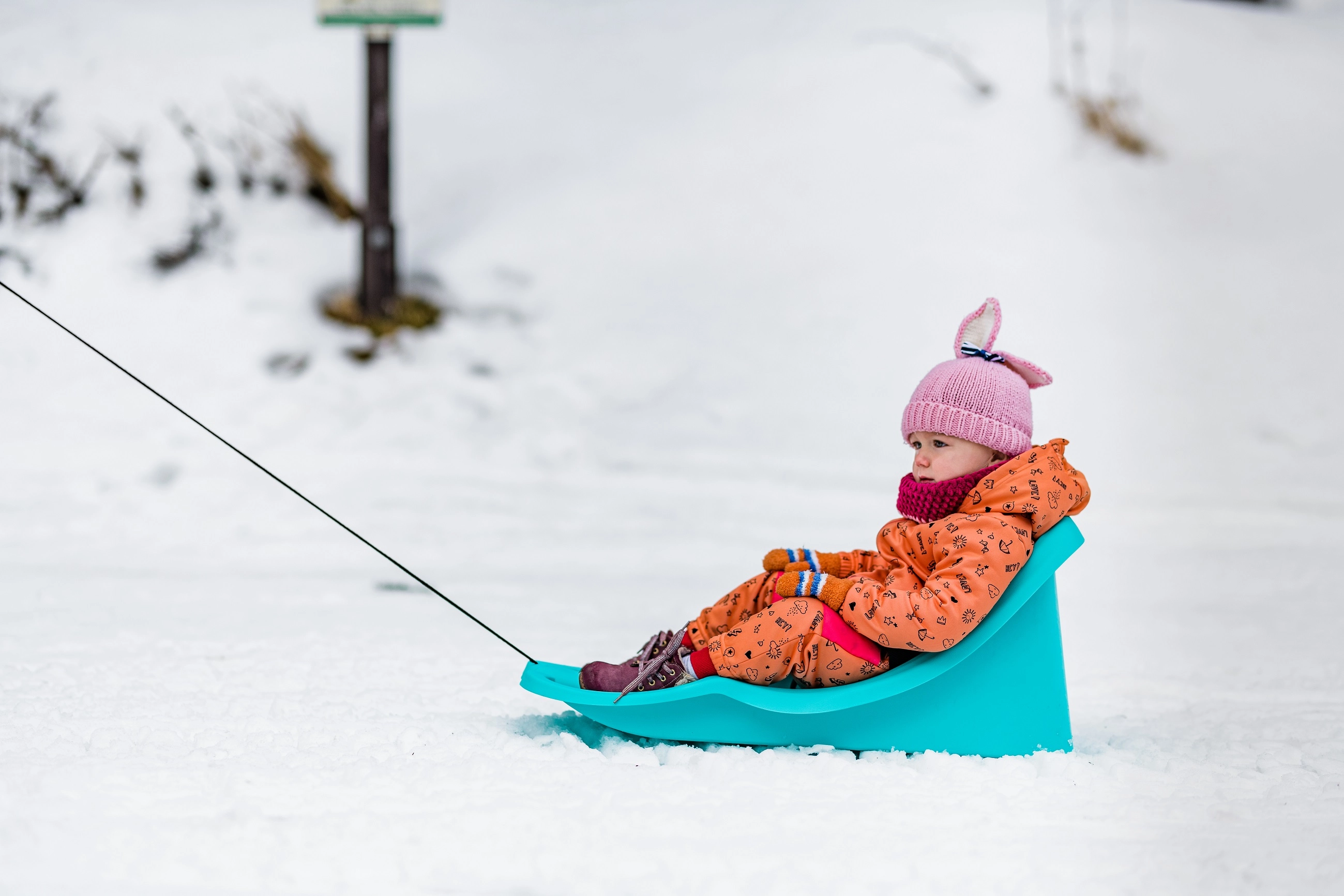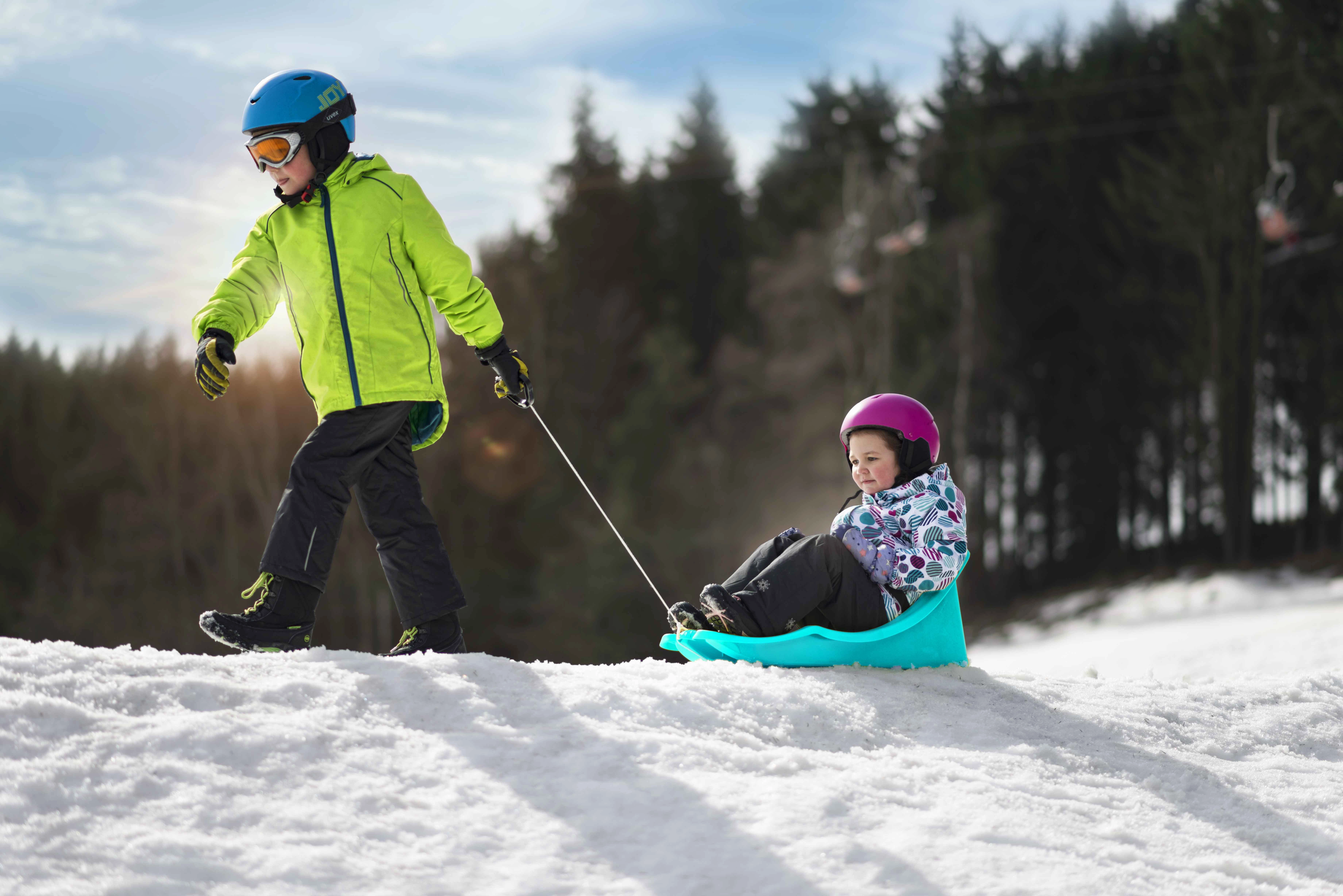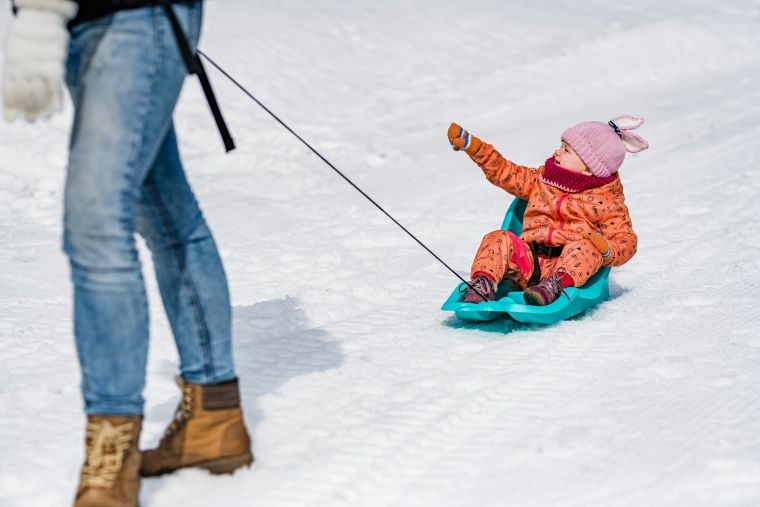 Den praktiske træksnor med håndtag gør det let for forældre at trække kælken over sneen – selv på længere stræk.