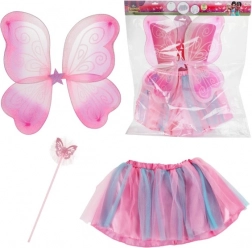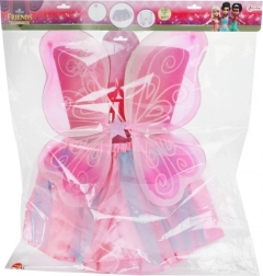Store lyserøde vinger med hvide mønstre, der minder om en rigtig sommerfugl. Perfekt til kostumer og udklædningslege.