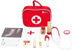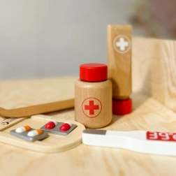 Sæt fra Classic World indeholder alt, hvad en lille læge behøver for at lege læge. Børn kan lytte til patienternes hjerteslag (plysbjørne, dukker) med stetoskop, 'måle' temperaturen med termometer, 'give' injektioner eller uddele nødvendige medicin. Lægeleg er ikke kun en populær rolleleg, men også en læring i empati og deltagelse, hvilket er meget vigtigt for sociale relationer. Dette sæt støtter udviklingen af fantasi og læren i problemløsning.