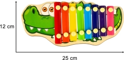 Opdag glæden ved musik med den søde xylofon formet som en krokodille. Takket være otte forskellige toner kan børn nemt spille deres første simple melodier. At spille på instrumentet styrker kreativitet, tålmodighed, koncentration og hjælper med at opbygge fornemmelse for rytme.