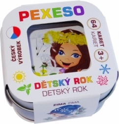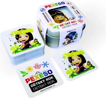 Et klassisk hukommelsesspil, der tager både børn og voksne gennem et år fyldt med oplevelser. Illustrationerne viser populære aktiviteter som at samle svampe, Sankt Nikolaus’ ankomst, grille pølser over bål, bygge en snemand og stå på ski. Det er nemt at spille: læg kortene ud, vend to ad gangen, og find de matchende par.
