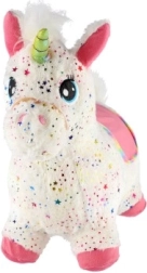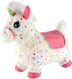 Hoppe-enhjørningen er en fantastisk ven til de første skridt og aktiv leg. Den stabile krop af holdbar gummi og et vaskbart plys-betræk med farvede stjerner sikrer komfort og hygiejne. Ørerne fungerer som håndtag, så barnet kan holde sig sikkert fast og hoppe glad både indenfor og udenfor på bløde underlag.
