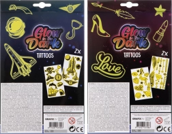 Dette sæt lysende tatoveringer er ideelt for piger, der ønsker at tilføje lidt glans til deres stil. Nyd de forskellige designs tilgængelige i pakken, som inkluderer to ark med tatoveringer. Klip nemt ud, placer på huden, fugt med en svamp, og det er klart! Brug er hurtigt og sjovt.