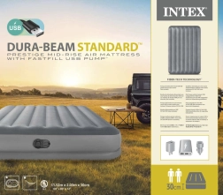Oppustelig seng i størrelsen 152 cm x 203 cm x 30 cm. Maksimal bæreevne 272 kg. Oppustningstid er 5,5 minutter. Nem at puste op, tømme og opbevare. Indbygget elektrisk pumpe.