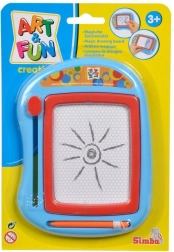 Børns magnetiske tegnetavle Art & Fun er det perfekte legetøj til børn, der elsker at tegne og udforske nye skabelsesmuligheder. Denne tavle er designet i en livlig blå-rød kombination og udstyret med en magnetisk pen, der nemt kan fastgøres og altid holdes ved hånden.