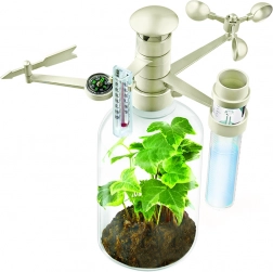 Sjov og lærerig meteorologisk station til børn fra 5 år. Denne station gør det muligt for børn at overvåge og registrere vejroplysninger ved hjælp af et miniobservatorium og forstå drivhuseffekten gennem en flaske med terrarium.