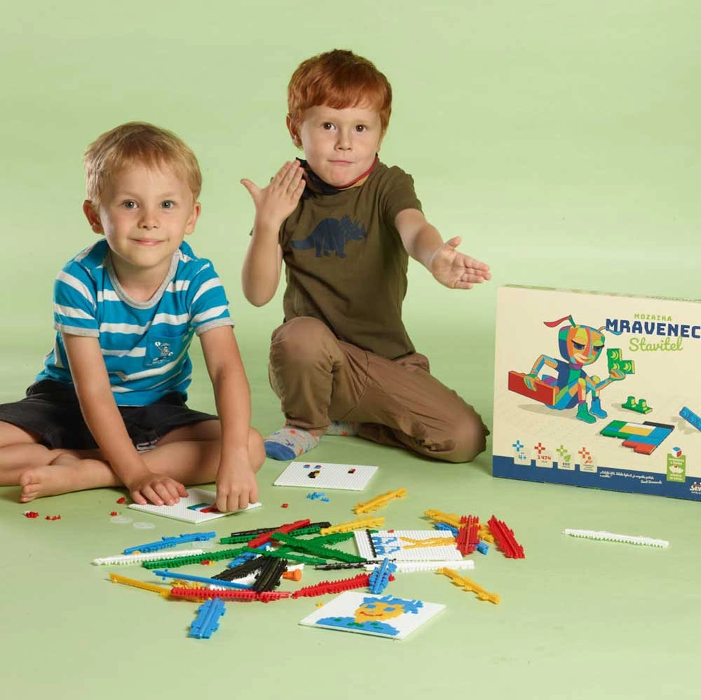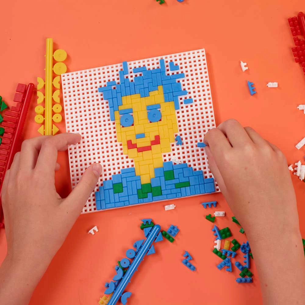 En unik byggesæt indeholder farvede dele, som børn kan sammensætte til utallige mønstre.