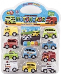 Dette farverige sæt af mini-biler bringer masser af action og historier til børn. I pakken finder du forskellige typer køretøjer – fra bus og politi til redning og brandbil – som indbyder til spændende leg med by, vej og redningsmissioner.
