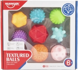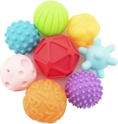 Dette sæt med teksturerede bolde er ideelt til børn fra seks måneders alder. De er fremstillet af silikone, som føles behagelig og gør dem lette at gribe. De forskellige overfladestrukturer stimulerer sanserne.